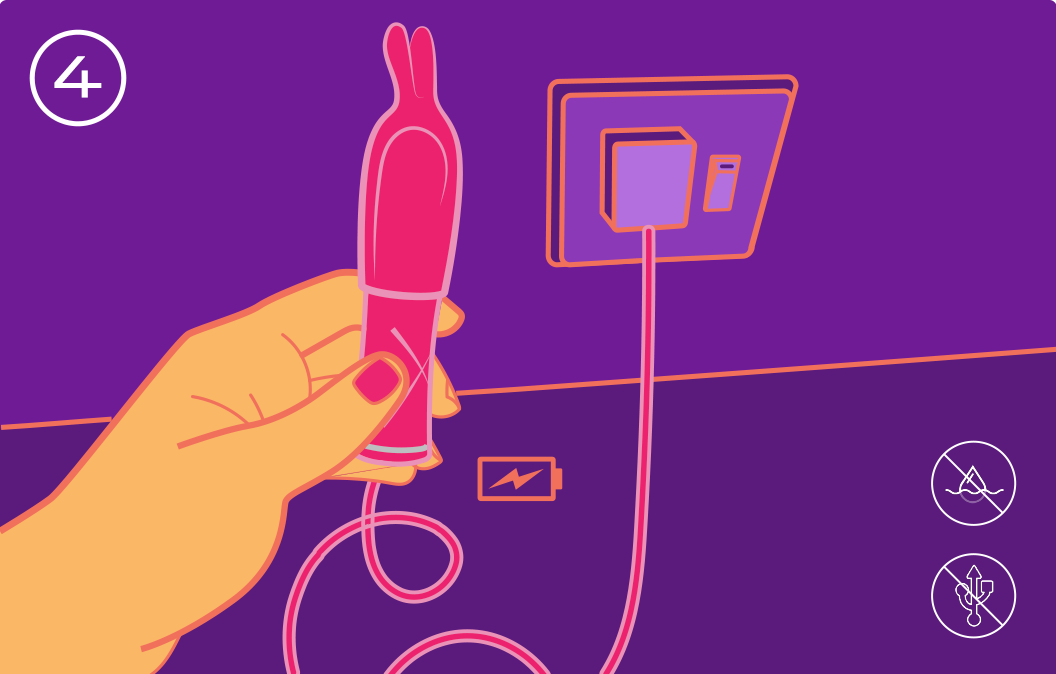 Przytrzymaj przycisk X przez 3 sekundy (zapali się biała dioda LED), aby rozpocząć wibracje. Pokryj wibrator dowolnym lubrykantem Durex na bazie wody przed włożeniem do pochwy. Upewnij się, że końcówka stymulująca nie znajduje się na urządzeniu podczas wkładania do pochwy.